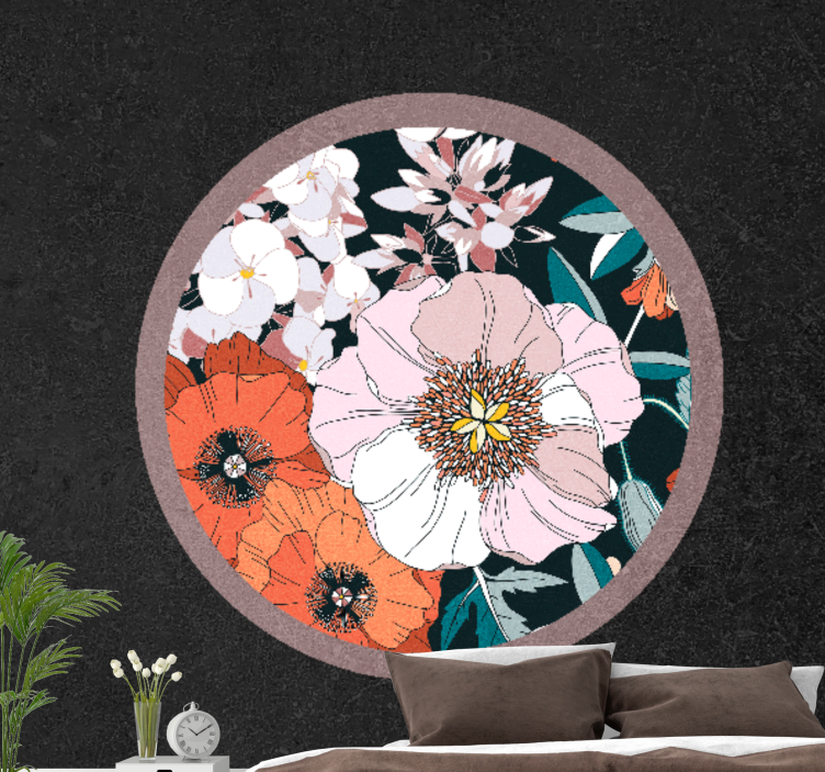 Transformez votre intérieur avec cette tapisserie fleur design circulaire floral qui évoque la beauté de la nature. Son motif unique mêle des fleurs colorées, des coquelicots délicats et un cercle harmonieux, tous dessinés à la main dans une illustration artistique qui apportera une touche vivante et pétillante à votre espace !