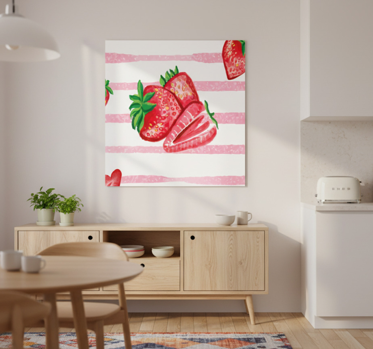 Référence: G575Ajoutez une touche de fraîcheur à votre intérieur avec ce Poster cuisine fraises sans couture sur fond rayé. Son design vibrant et coloré, où les fraises se mêlent harmonieusement à un fond rayé, crée une ambiance joyeuse et accueillante. Idéal pour égayer votre espace de vie, ce poster est un véritable clin d'œil à la convivialité de la cuisine.