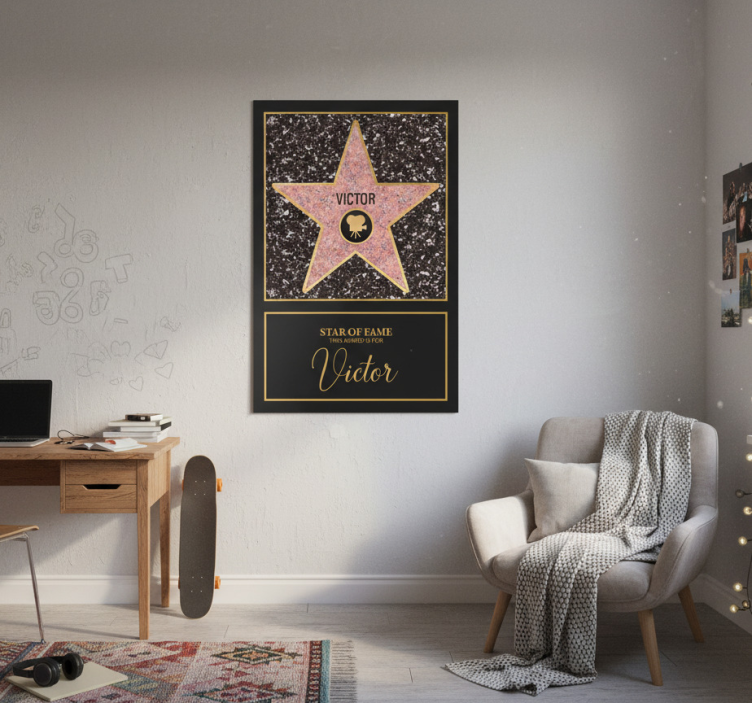 Référence: G759Découvrez notre Poster salon étoile de la renommée personnalisée, un véritable chef-d'œuvre qui illuminera votre intérieur. Ce design captivant, avec ses étoiles scintillantes et son élégance intemporelle, apportera une touche de glamour à votre salon. Imaginez-le accroché sur un mur, attirant tous les regards et suscitant des conversations passionnantes !
