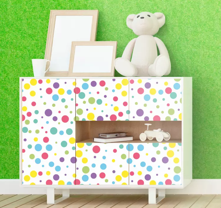 Ajoutez une touche de joie à votre intérieur avec notre Adhésif meuble motif à pois vibrants. Ce design coloré et espiègle, orné de petits pois et de formes géométriques, transforme chaque meuble en une œuvre d'art unique. Sa conception audacieuse attire le regard et apporte une atmosphère ludique à n'importe quelle pièce.