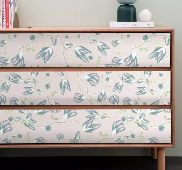 Adhésif meuble tiroir à motifs floraux