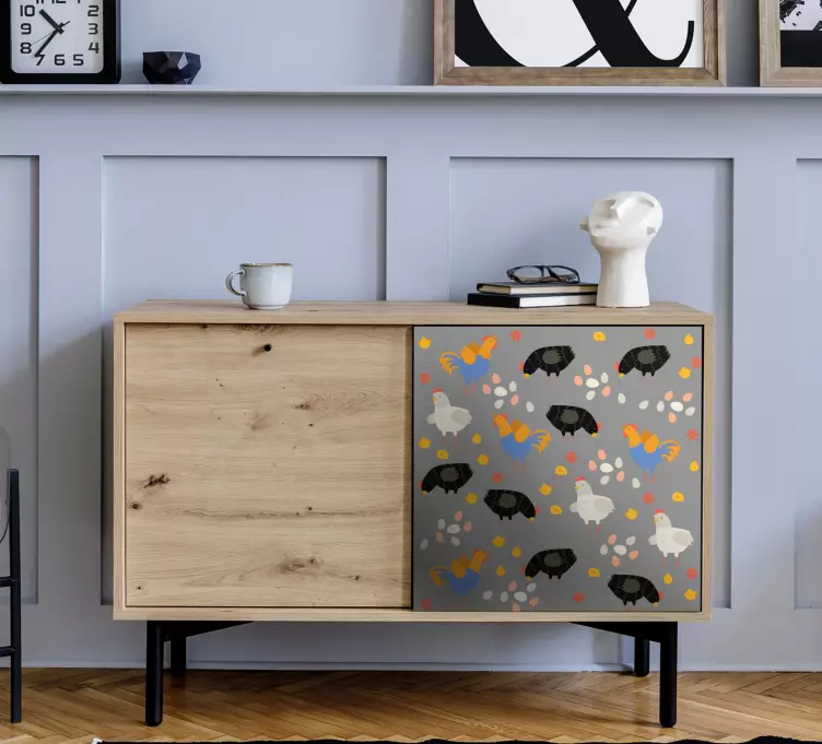 Référence: A52348Une composition vibrante mettant en scène divers animaux de la ferme, y compris des "colorful chickens" et des "black hens", dispersés sur un fond clair. Ce design ludique apporte une atmosphère joyeuse, parfaite pour ajouter du charme à n'importe quel espace.