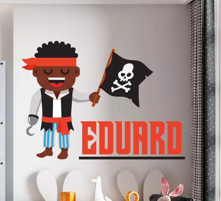 Transformez la chambre de votre enfant en un véritable monde d'aventures avec notre Sticker chambre enfant aventure de personnage pirate. Ce design ludique et coloré, mettant en scène un pirate drôle, offre une illustration captivante qui stimule l'imagination. Personnalisable avec le nom de votre enfant, ce sticker apporte une touche unique à la chambre des enfants, tout en mêlant éducation et amusement grâce à son style dessin animé.