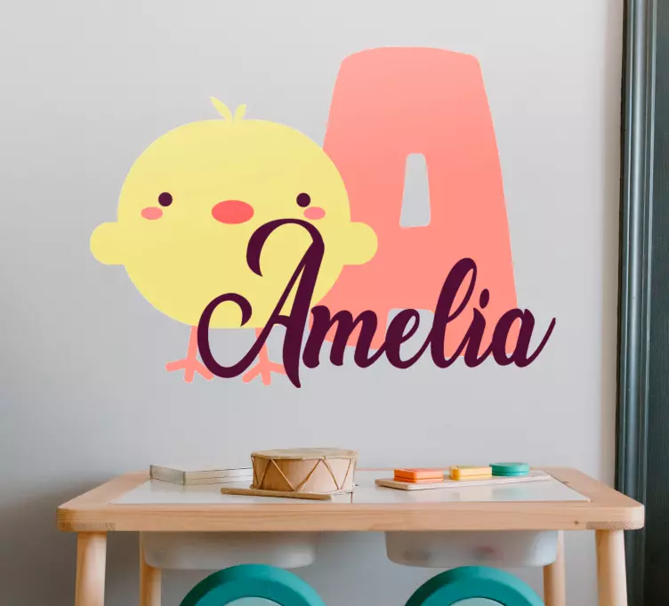 Offrez à la chambre de votre enfant une touche de magie avec notre Sticker chambre enfant design de poussin mignon. Ce motif espiègle représente un adorable oiseau au style cartoon, parfait pour apporter une ambiance joyeuse. Personnalisable avec l'initiale ou le nom de votre enfant, cette décoration colorée transformera son espace en un véritable havre de créativité et de bonheur.