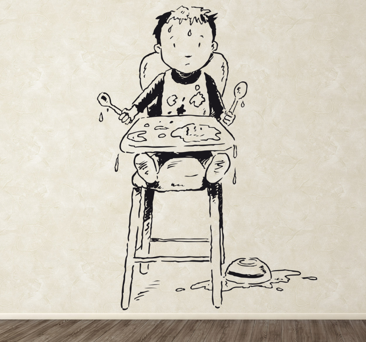 Transformez la chambre de votre enfant en un lieu amusant et ludique avec notre Sticker chambre enfant petit gourmand désordonné. Ce magnifique design, illustrant un petit garçon espiègle en train de jouer sur sa chaise haute, capture l'esprit joyeux de l'enfance tout en mettant en avant les dégâts alimentaires avec une touche humoristique. Chaque détail de cette illustration apportera une ambiance dynamique et chaleureuse à l'espace de votre petit.