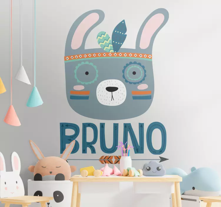 Apportez une touche de fantaisie à la chambre de votre enfant avec notre Sticker chambre enfant visage d'animal ludique. Ce design inspirant et coloré arbore un lapin au style nordique, créant une atmosphère drôle et amusante. Imaginez la joie de votre petit en voyant un visage d'animal si attachant sur son mur, tout en rendant l'espace unique et personnalisable avec son Nom !