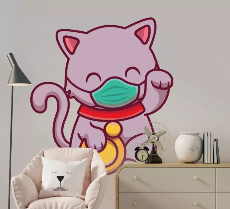Référence: A48967Un chat joyeux est représenté portant un masque de protection, mettant en avant un caractère ludique. Le design met en valeur la couleur vive du chat et ses traits ronds, apportant une touche fantaisiste. Cette représentation souligne la joie et la résilience en période difficile, capturant un sentiment léger.
