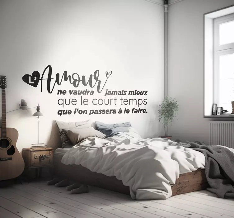 Référence: A38801Le Sticker Citation Serge Gainsbourg sur l'amour apporte une touche unique et romantique à votre décoration intérieure. Avec son design français et son texte inspirant, ce design est parfait pour exprimer votre amour. Le mot "aimer" est mis en valeur, avec une typographie élégante et un motif de devis ajoutant une touche spéciale. Fabriqué avec des matériaux de haute qualité, ce design est résistant, lavable et adapté à toutes les surfaces planes. Vous pouvez également personnaliser les dimensions selon vos préférences. Installez facilement ce motif en suivant les instructions, et laissez l'amour briller dans votre intérieur avec style!