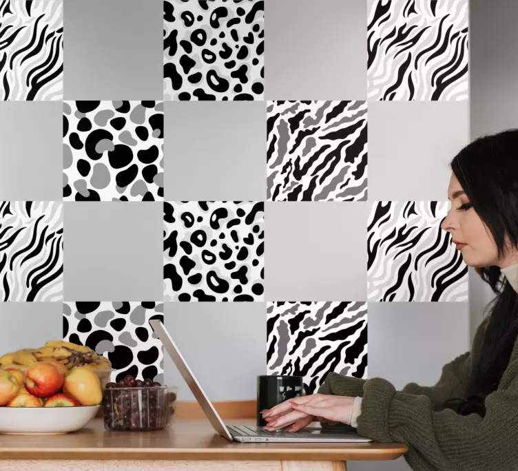 Découvrez notre Sticker déco carreaux élégants à motifs qui allie subtilement modernité et élégance. Avec son design inspiré des tuiles et carrelages aux motifs de léopard, cette œuvre d'art est une véritable empreinte d'animal qui apportera une touche de sophistication à votre intérieur. Sa texture monochrome et son style abstrait en font un choix parfait pour ceux qui recherchent un aspect géométrique et contemporain.