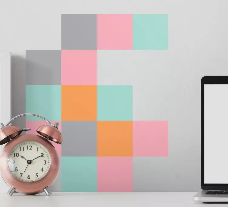 Référence: A53373Une composition vibrante de formes géométriques, présentant des couleurs pastel douces dans une configuration ludique. Ce design rehausse n'importe quel espace par son apparence accrocheuse, alliant style contemporain et flair artistique. Le mélange de carrés aux teintes variées crée une atmosphère vivante, parfaite pour ajouter de l'intérêt à un mur.
