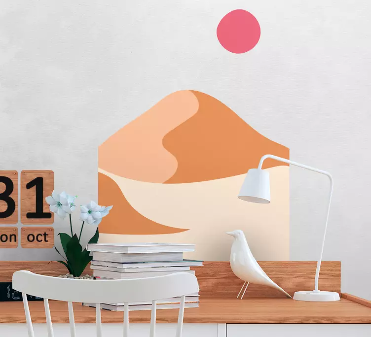 Découvrez l'harmonie parfaite entre la nature et l'art avec notre Sticker déco dunes de sable abstraites. Ce motif captivant mêle des éléments de montagne et une illustration abstraite mettant en scène le soleil qui illumine de magnifiques dunes de sable. Avec un design minimaliste, il vous invite à vous plonger dans un univers paisible et inspirant.