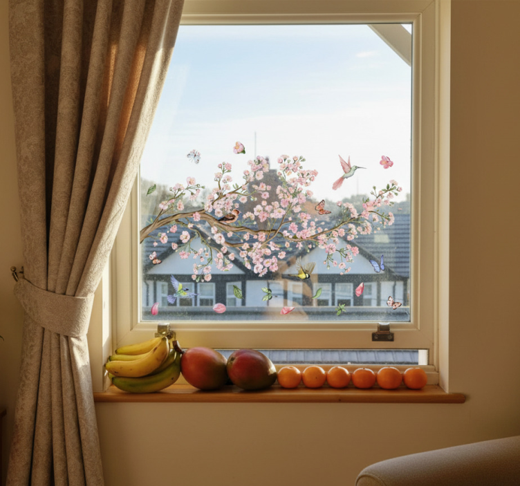 Sticker fenêtre fleurs de cerisier avec oiseaux