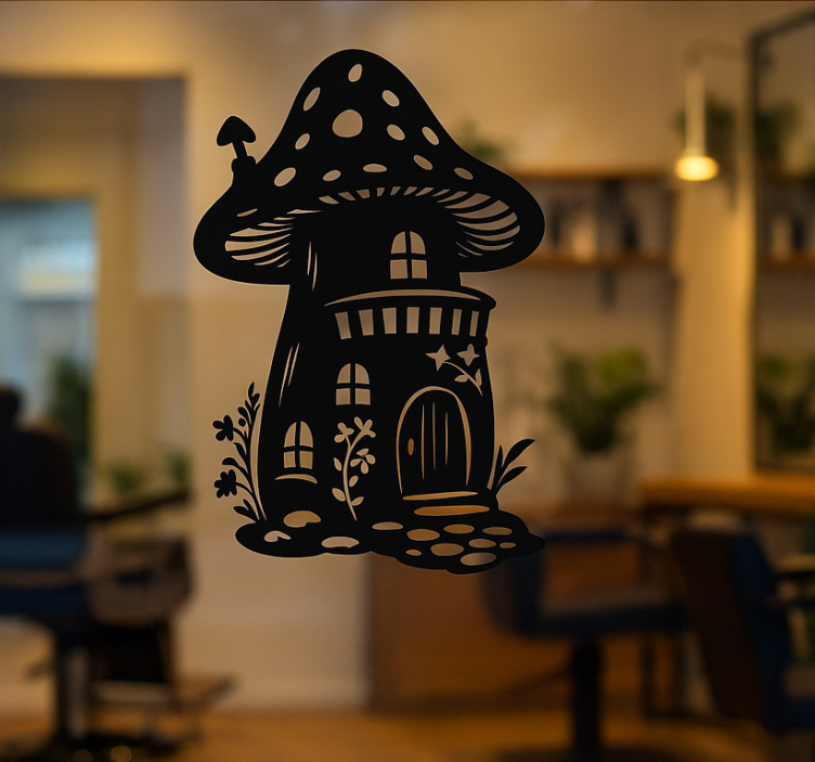 Sticker fenêtre maison champignon de conte