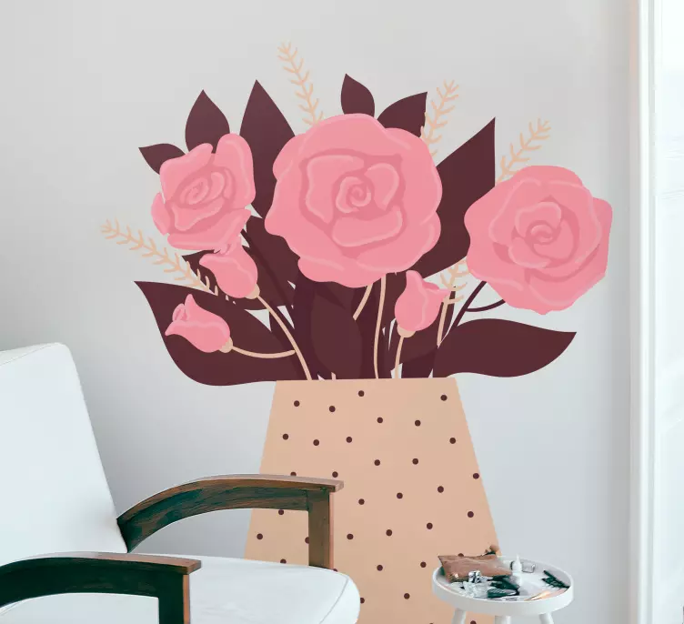 Découvrez notre Sticker fleur arrangement de fleurs roses, une illustration florale éblouissante qui capture la beauté de la nature avec ses délicats clous de girofle et ses roses vibrantes. Ce design enchanteur, placé dans un vase, transformera votre décoration de maison en un véritable havre de paix et de fraîcheur.
