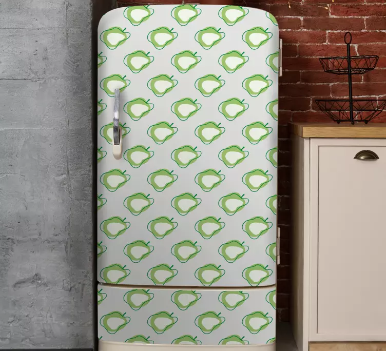 Apportez une touche de fraîcheur à votre cuisine avec notre Sticker frigo design motif fruits. Ce magnifique design arbore des griffonnages de pommes et d'autres fruits dans des nuances de vert, créant un effet à la fois ludique et élégant qui illuminera votre réfrigérateur. Transformez votre frigo en une œuvre d'art rafraîchissante qui ne manquera pas d'attirer l'œil de vos invités !