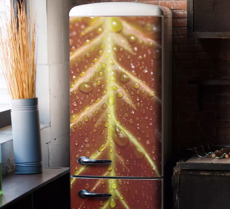 Sticker frigo gouttes d'eau sur feuilles