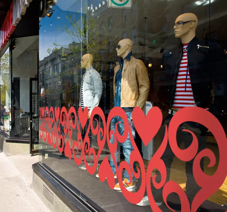 Sticker d'une frise composee de coeurs ... tout ce qu'il y a de plus romantique et adapté pour décorer la vitrine de votre boutique pendant la Saint-Valentin ou ajouter une touche romantique et sensuelle dans votre maison. Vous pouvez choisir la dimension de l'autocollant en fonction de vos besoins. Cet autocollant économique et de bonne qualité est facilement applicable sur tous types de surfaces. Il ne laisse pas de traces ni de bulles.