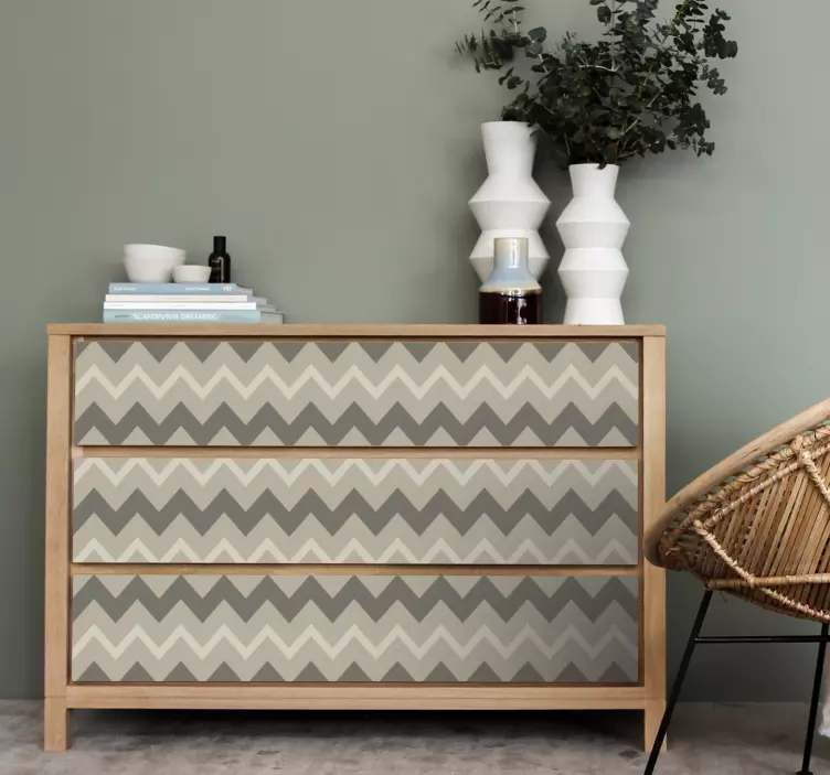 Apportez une touche d'élégance à votre intérieur avec notre Sticker géométrique motif chevron superposé. Ce design captivant allie des éléments tels que des bandes, des rayures et des zigzags dans des tons neutres, créant ainsi un motif de vagues harmonieux. Idéal pour embellir vos meubles, il transforme instantanément n'importe quel espace en un lieu accueillant et moderne !