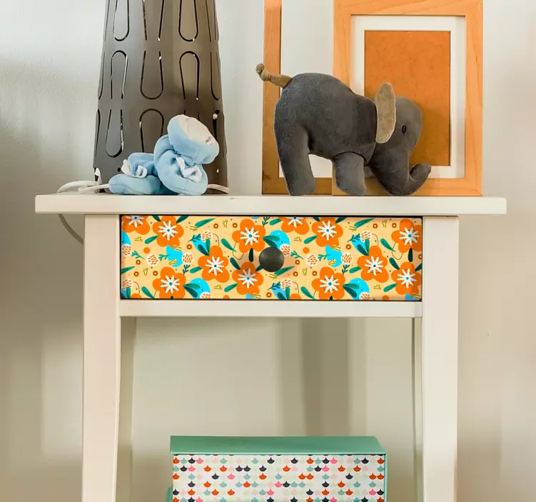 Sticker pour meuble motif fleurs oranges