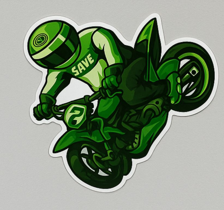 Sticker moto spray du cavalier vert