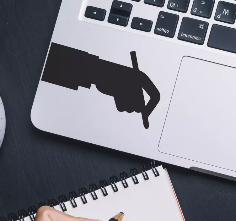 Découvrez notre sticker ordinateur main tenant un crayon, une œuvre d'art qui apporte une touche créative et artistique à votre espace de travail. Avec sa silhouette noire élégante, ce design unique évoque l'écriture et l'inspiration, transformant votre ordinateur portable en une toile d'expression. Laissez-vous séduire par l'alliance parfaite entre fonctionnalité et esthétique !