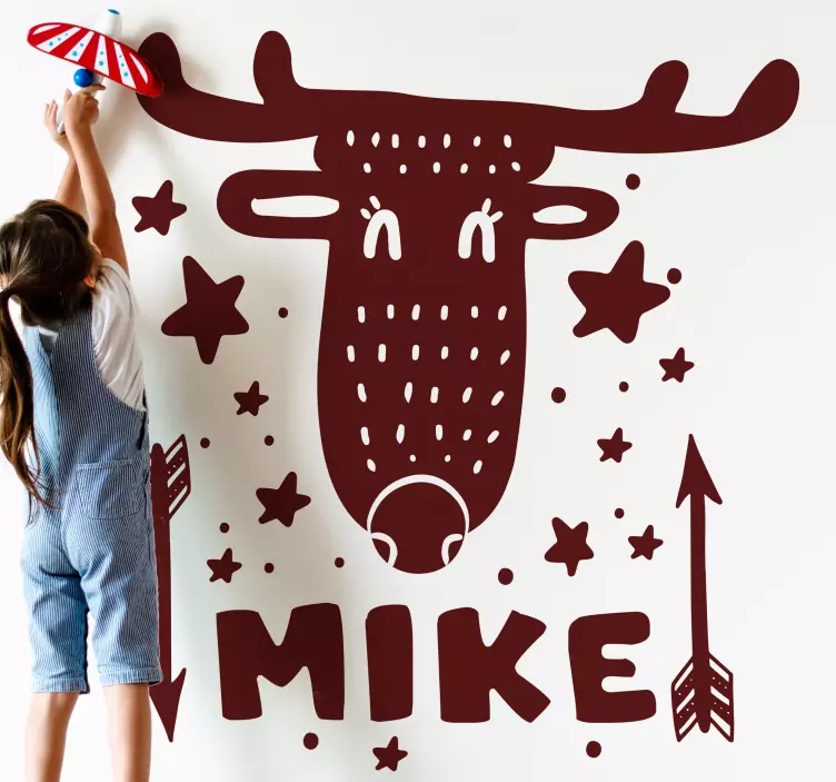 Découvrez notre sticker personnalisable tête de cerf fantaisiste, un design joyeux qui évoque l'esprit nordique avec un renne espiègle, des étoiles scintillantes et une flèche magique. Ce motif ludique saura séduire les enfants et apporter une touche unique à toute décoration.
