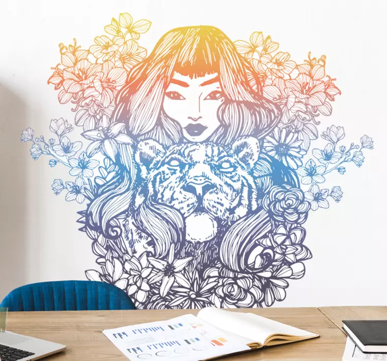 Le Sticker personnes et personnages femme avec tigre est parfait pour transformer votre espace en un lieu d'inspiration et de beauté. Imaginez ce design envoûtant sur vos murs, apportant une touche artistique et originale à votre décoration. Ce sticker se marie harmonieusement avec différents styles d'intérieur et suscite l'émerveillement de vos invités !