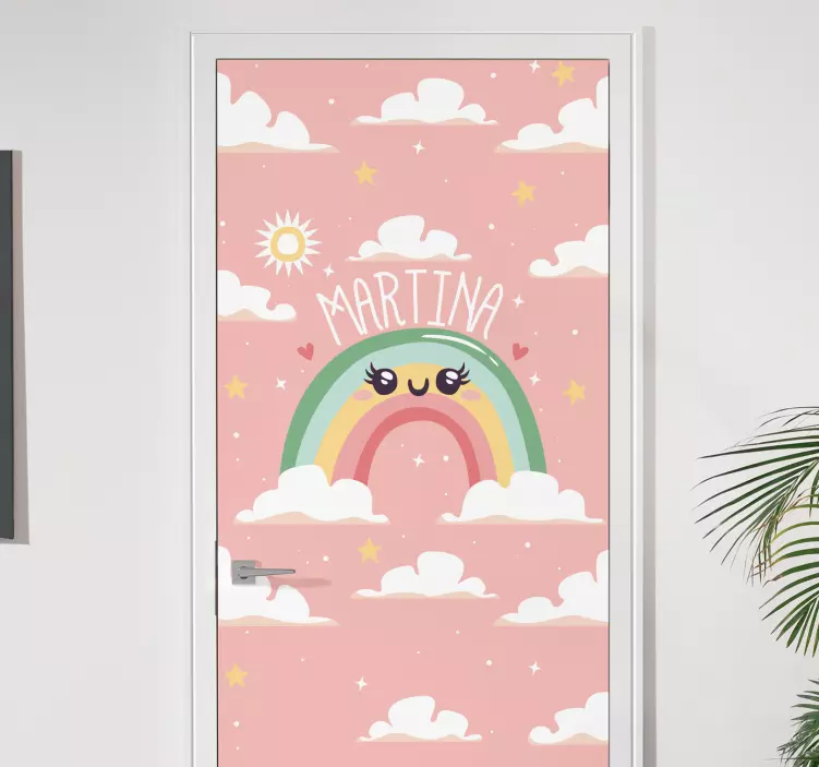 Apportez une touche de magie à votre espace avec notre Sticker porte design arc-en-ciel personnalisé ! Ce magnifique autocollant met en scène un arc-en-ciel coloré émergeant de nuages joufflus, illuminé par un soleil radieux. Personnalisez-le avec votre nom pour créer un décor à la fois mignon et drôle, qui ajoutera une note d'amusement à n'importe quelle porte. Transformez votre intérieur en un lieu joyeux et accueillant grâce à cette conception graphique unique !