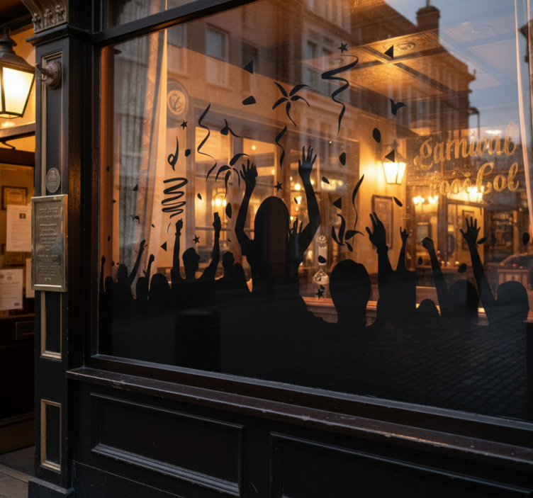 Sticker vitrine foule festive de carnaval