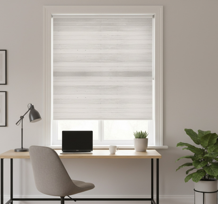 Store enrouleur bureau planks en bois rustiques gris élégants