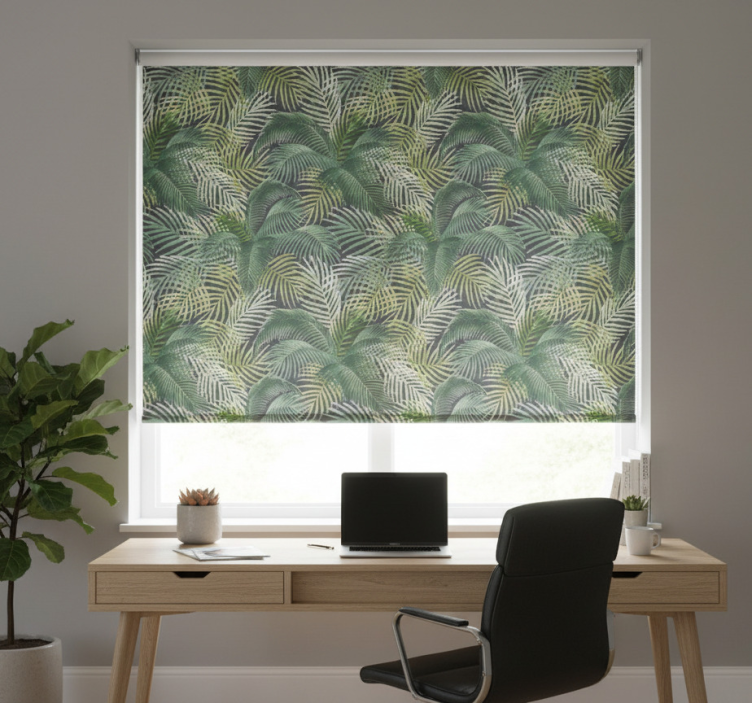 Store enrouleur bureaux feuilles de palmier vertes