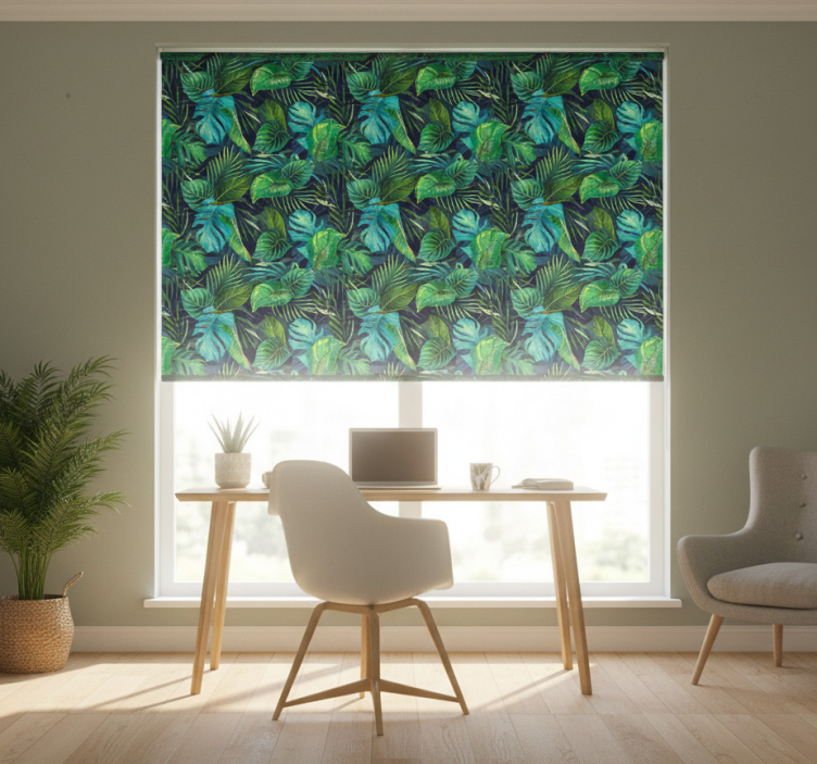 Store enrouleur bureaux motif feuilles vertes réalistes