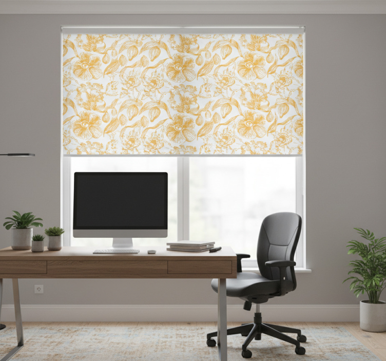 Store enrouleur bureaux motif fleurs orchidées jaunes