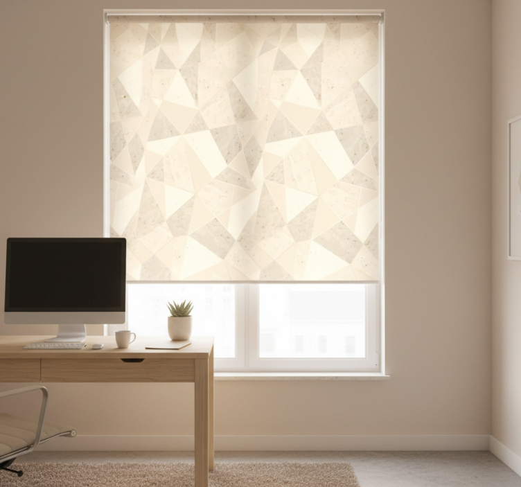 Référence: E7317Découvrez le Store enrouleur bureaux triangles dorés 3d, un véritable bijou de design. Avec son motif de triangles dorés en 3D, ce store apporte une touche moderne et élégante à votre espace de travail. Son allure unique crée une atmosphère inspirante, tout en jouant avec la lumière naturelle pour illuminer vos journées de façon chic.