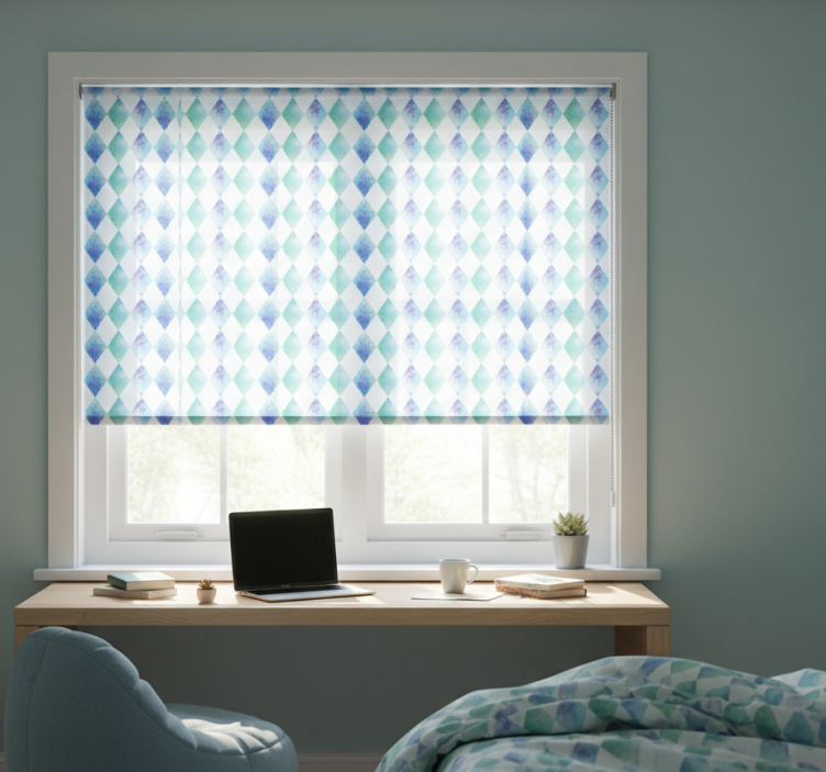 Store enrouleur chambre ado motif harlequin aquarelle