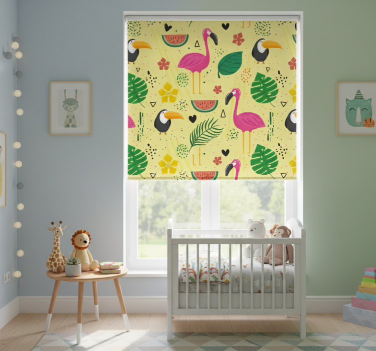 Store enrouleur chambre enfant animaux mignons plantes