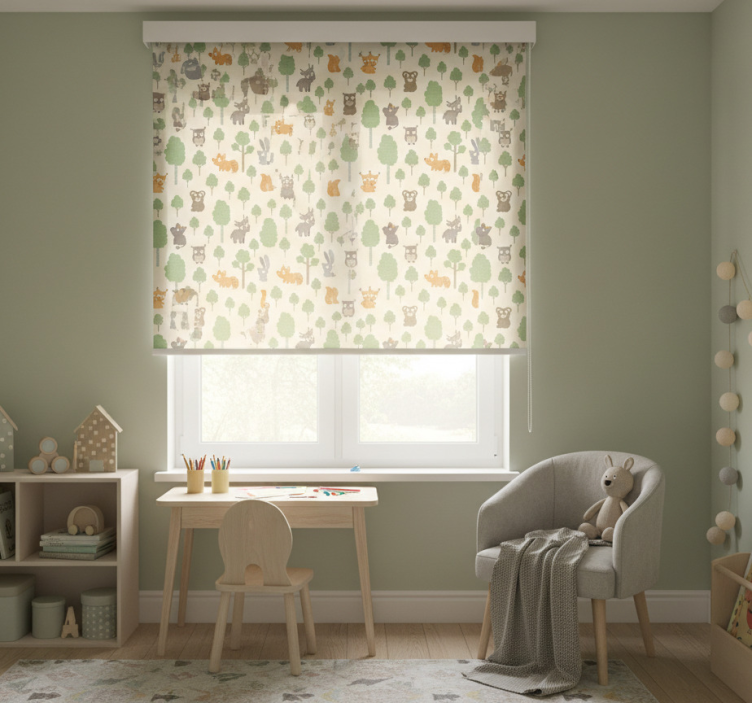 Store enrouleur chambre enfant motif créatures forestières