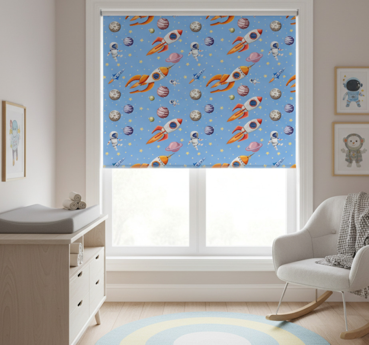 Store enrouleur chambre enfant motif espace aquarelle