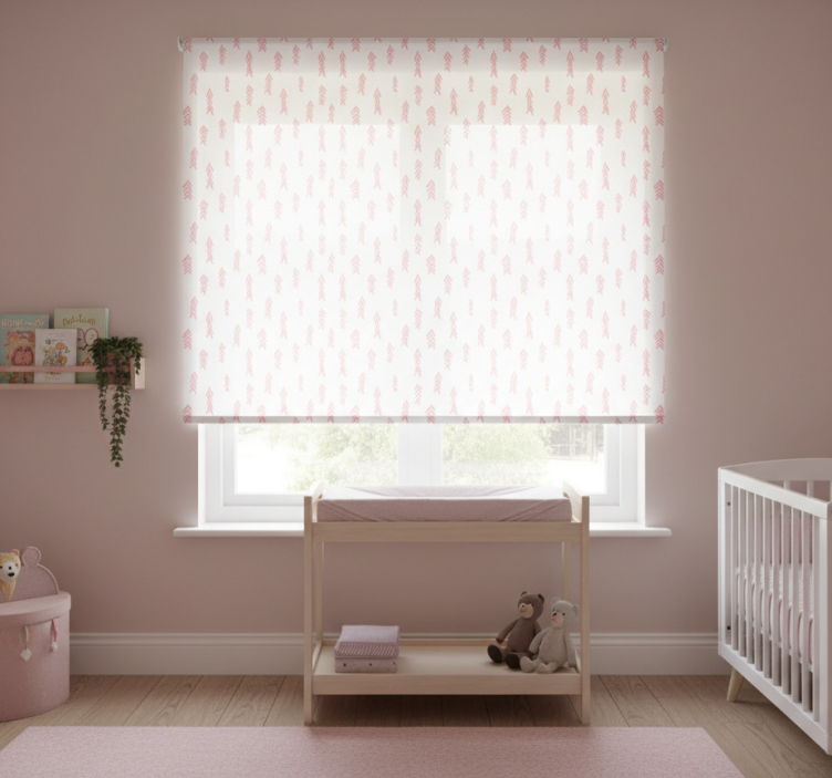 Store enrouleur chambre enfant motif flèches roses sur blanc