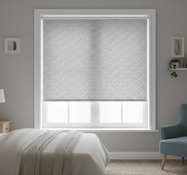 Store enrouleur gris à lignes grises en zigzag