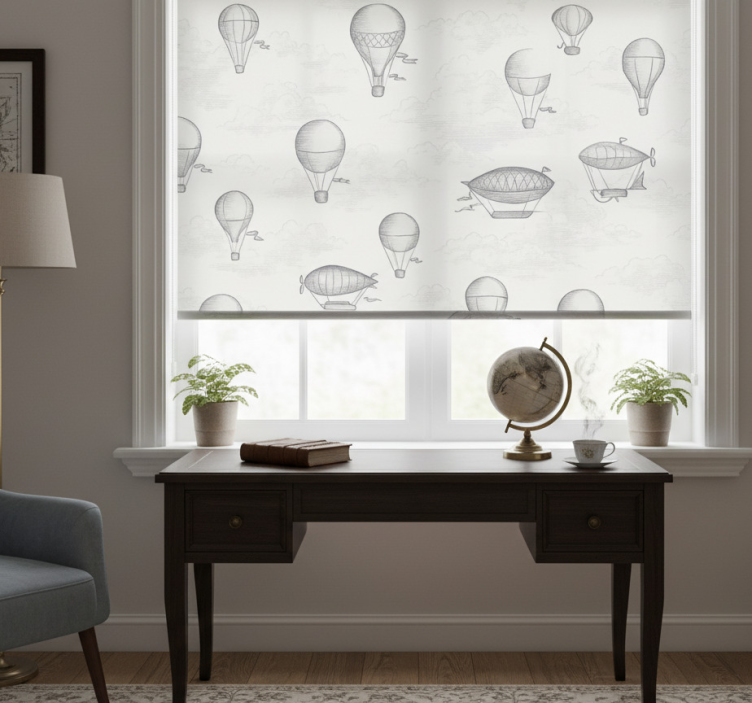 Store enrouleur gris cieux vintage et dirigeables