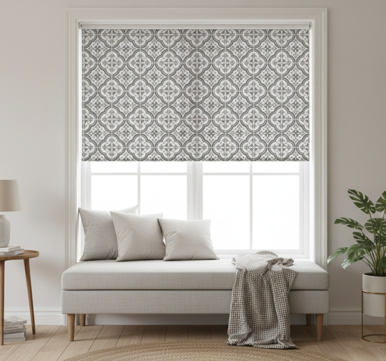 Store enrouleur gris motif floral classique