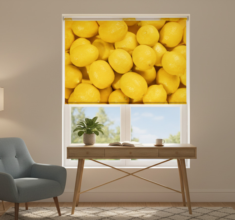 Référence: E8769Ce store enrouleur jaune citrons décoratif apporte une touche de fraîcheur et de gaieté à votre intérieur avec son motif vibrant de citrons. Son design enjoué égaye n'importe quelle pièce, transformant votre espace en un lieu accueillant et lumineux. Pratique et esthétique, il allie fonctionnalité et style avec brio.