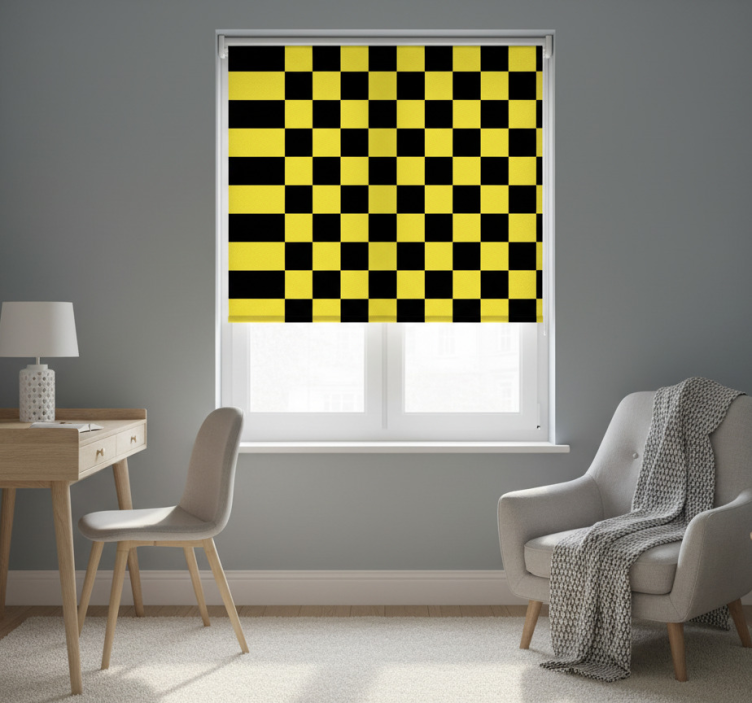 Store enrouleur jaune damier noir et jaune