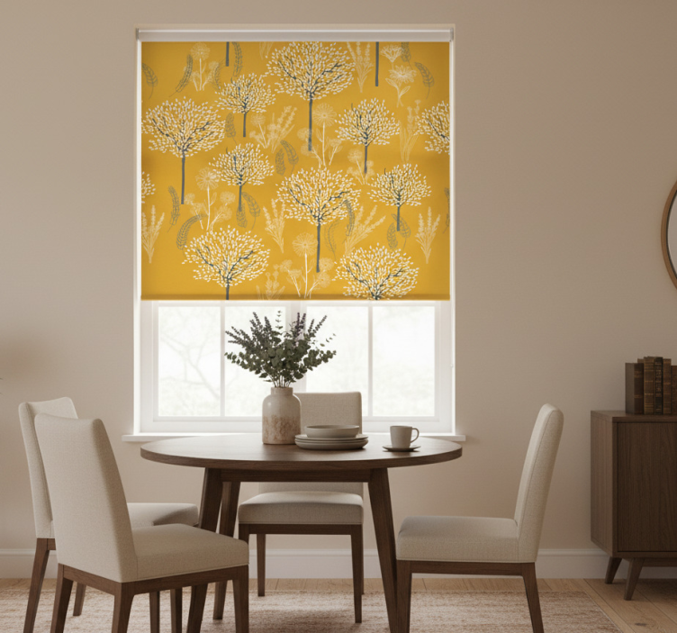 Store enrouleur jaune motif arbres