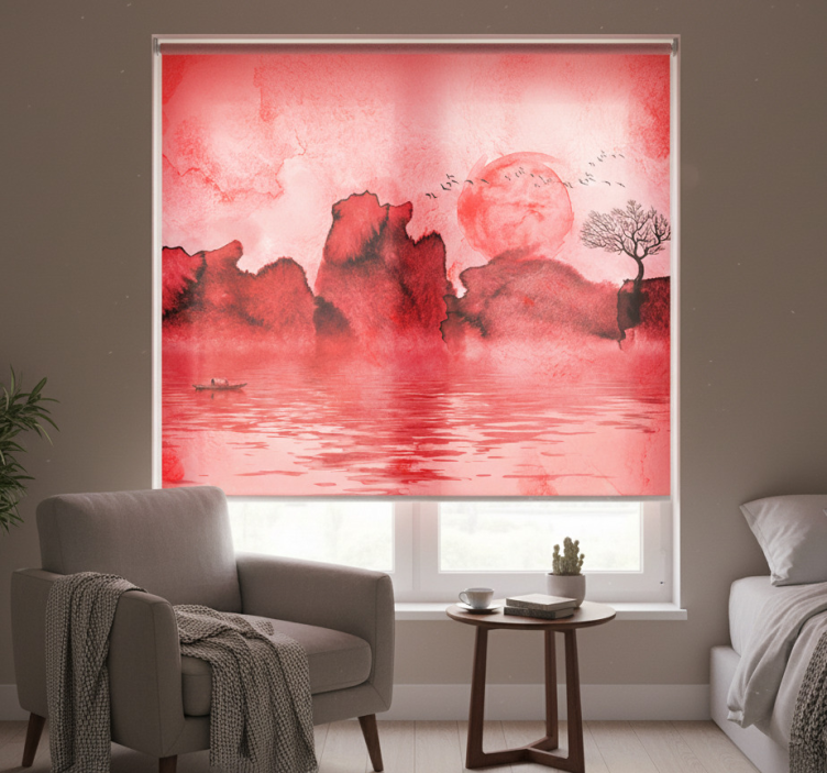 Store enrouleur rouge paysage à l'encre chinoise