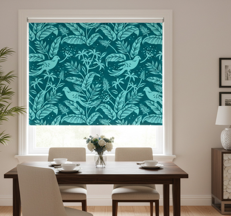 Store enrouleur salle à manger oiseaux volants turquoise