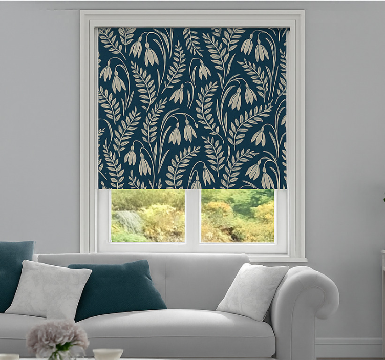 Store enrouleur scandinave fleurs de perce-neige beige marine