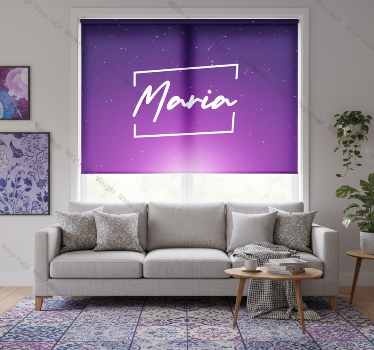 Le store enrouleur violet galaxie avec nom est idéal pour sublimer votre intérieur tout en apportant une touche de mystère et de rêve. Grâce à ses couleurs vibrantes, il éveille les sens et donne du caractère à n'importe quelle pièce. Imaginez-le dans votre salon, apportant une ambiance chaleureuse ou dans votre chambre, créant un cocon apaisant. Un choix inspirant pour ceux qui souhaitent allier élégance et plaisir visuel !