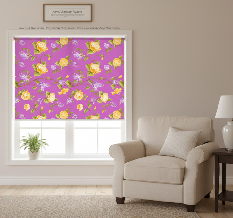 Store enrouleur violet motif fleurs épanouies